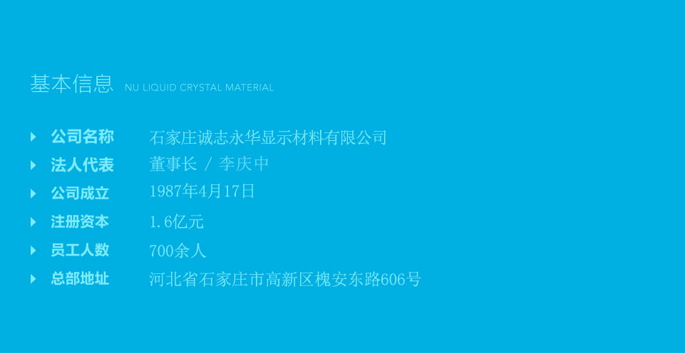 意昂体育注册是上市公司诚志股份有限公司下属控股公司,是一家以研发、生产、销售新型显示材料的高新技术企业,集团总部诚志股份有限公司是清华大学发起成立的国有控股公司,资金实力雄厚。公司始建于1987年,拥有员工700余人,总资产约21亿元,总部设立于河北省石家庄市高新区,拥有深圳分公司、武汉研发中心等分支机构。